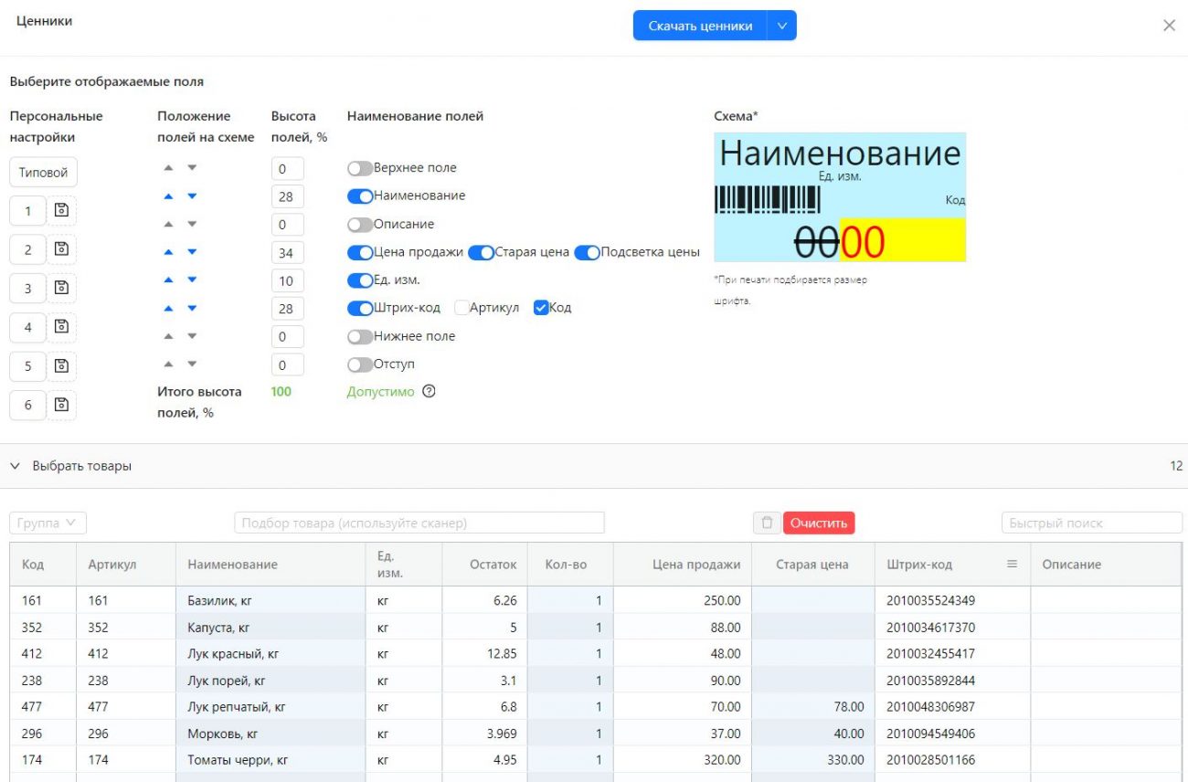 - Если из-за новой закупочной цены, сезонной распродажи или переоценки неликвида вам потребуются новые ценники, вы сможете создать их за несколько минут и распечатать.
