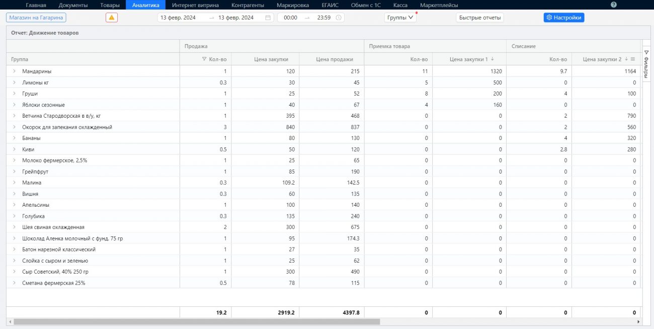 - Отчёты покажут, какие товары пользуются спросом, а какие залёживаются на прилавках. Вы быстро поймёте, что нужно докупить, чтобы повысить продажи.