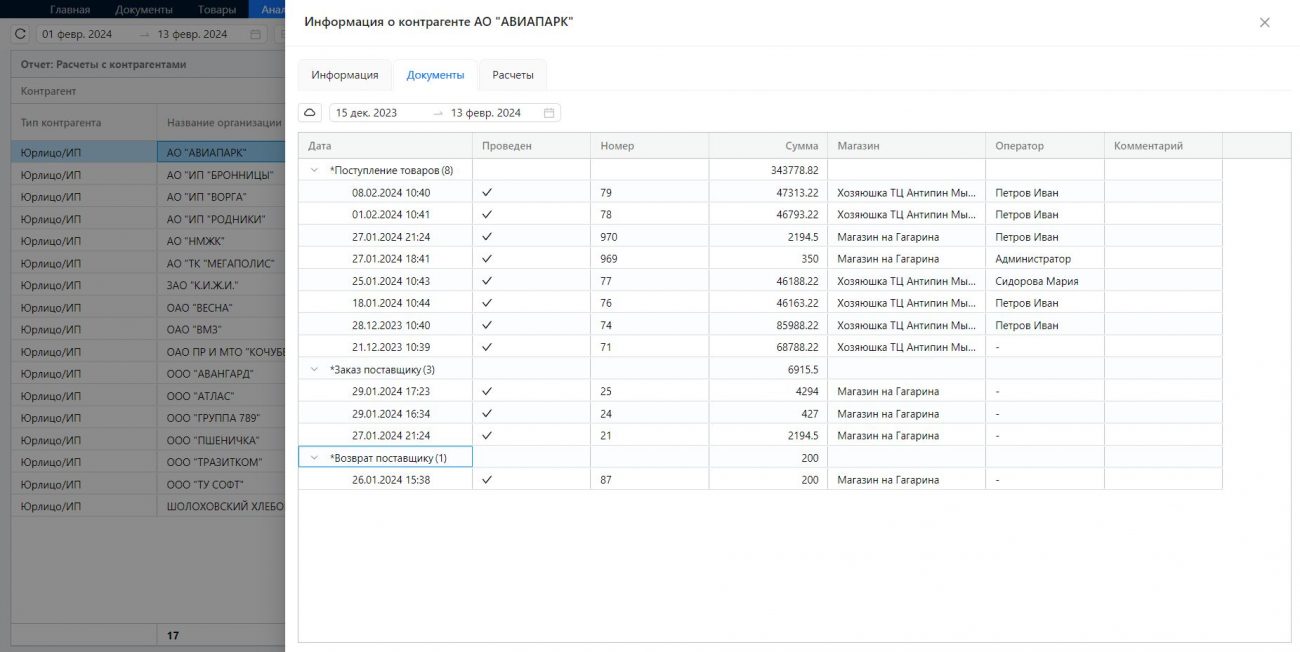 | Контрагенты | − | ✓ | ✓ | ✓ |